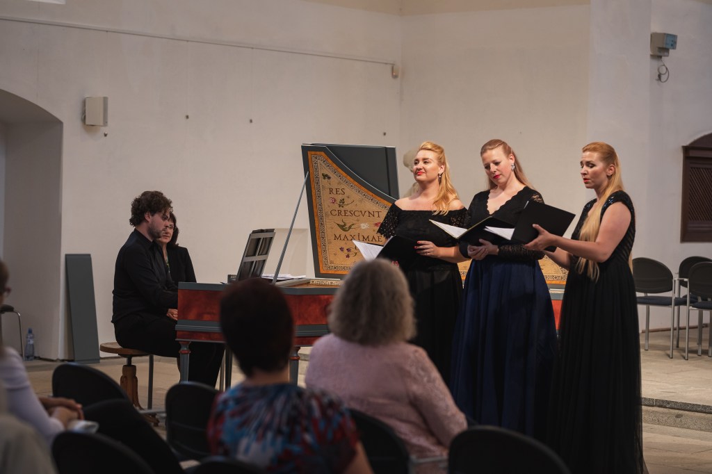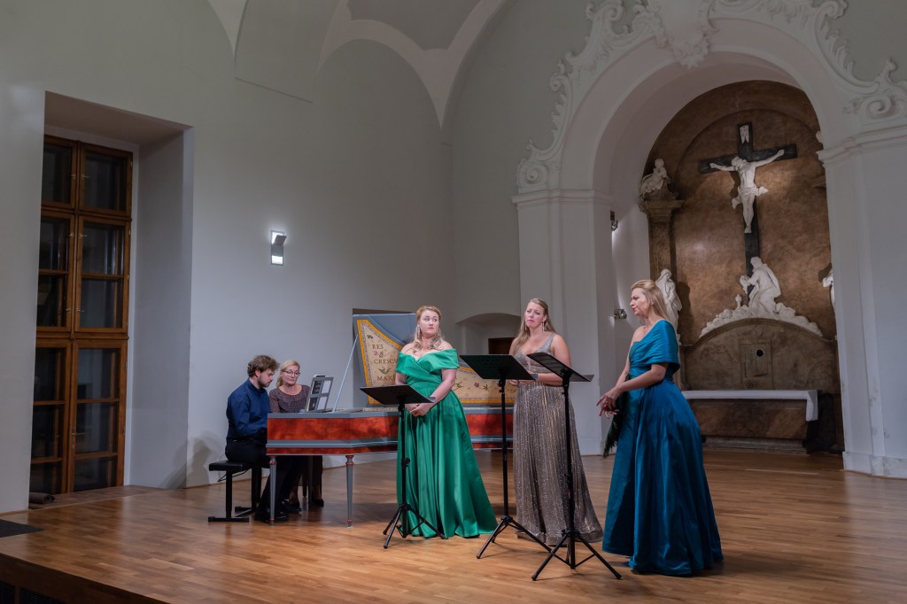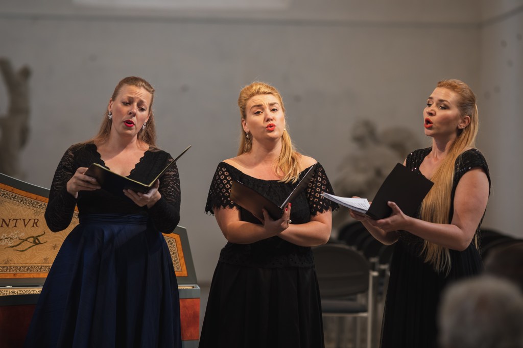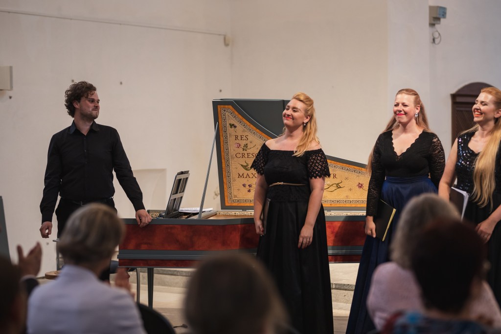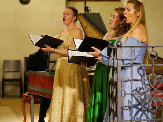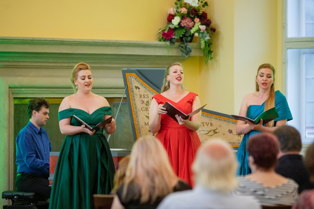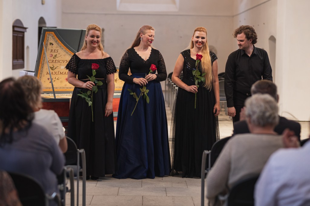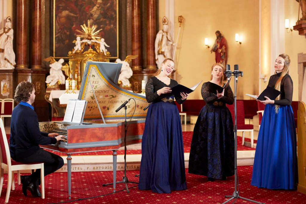 The female vocal trio Drei Engel with a harpsichord virtuoso is literally a combination of four elements in harmonious whole. Their advantage is not only historically informed interpretation of music, but also genuine emotions, enormous energy and pure joy of music, with which they win over listeners. Their performance clearly shows a strong connection, as in addition to professional relationships, they are also bound by a strong bond of friendship. This allows for a certain uninhibited performance and light flirtation with the interpreted repertoire, which makes each concert a unique experience. Individually, as you can read in their CVs, each has slightly different career goals and various successes in their musical careers. However, the joint programmes are for thema matter of heart, which the audience could experience at concerts such as at the Český Krumlov International Festival, the Znojmo Music Festival, in the cycles of chamber concerts of Collegium 1704 in Prague’s Vzlet or Barbara Maria Willi performs, and many others.