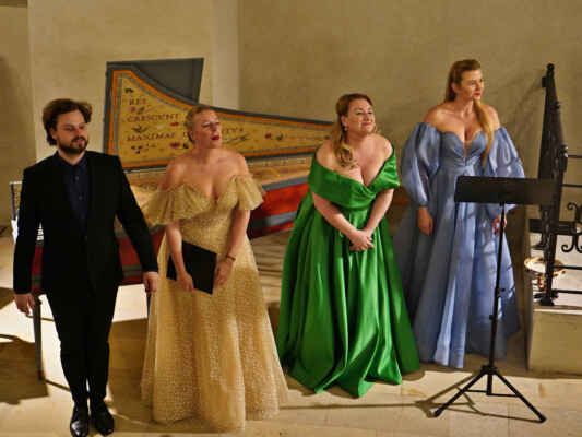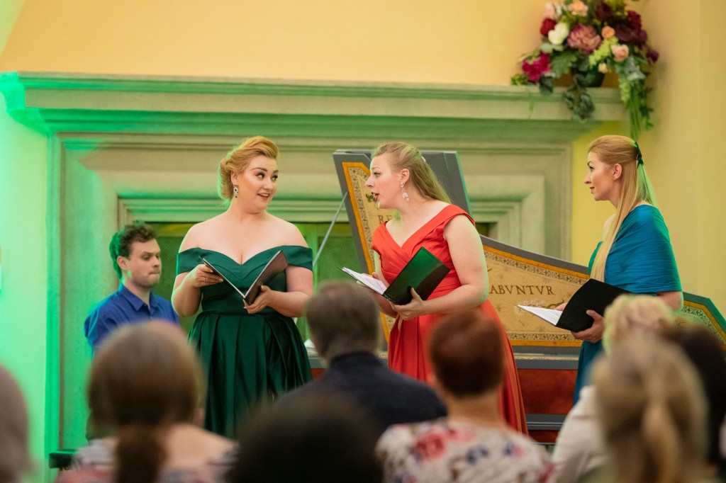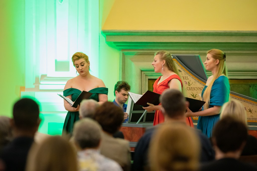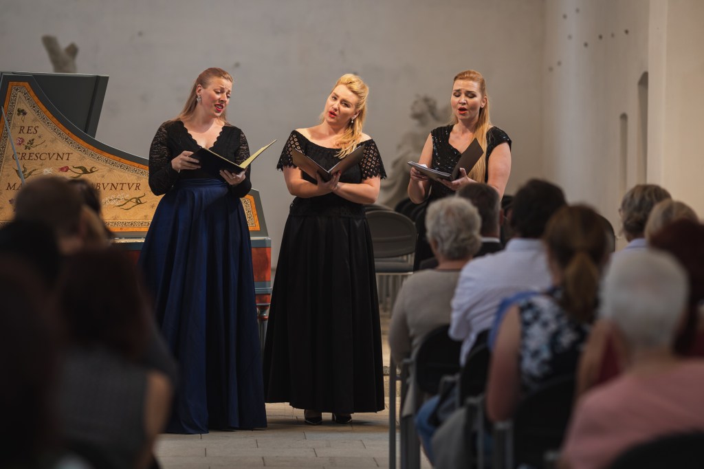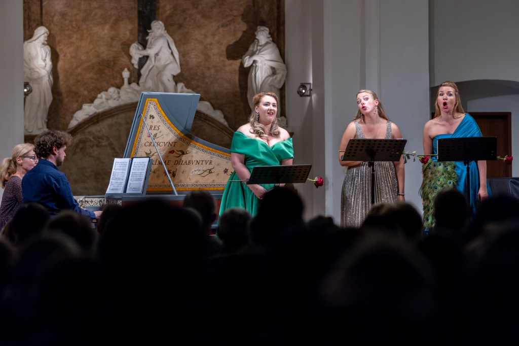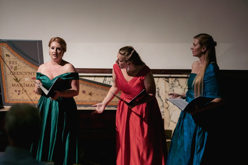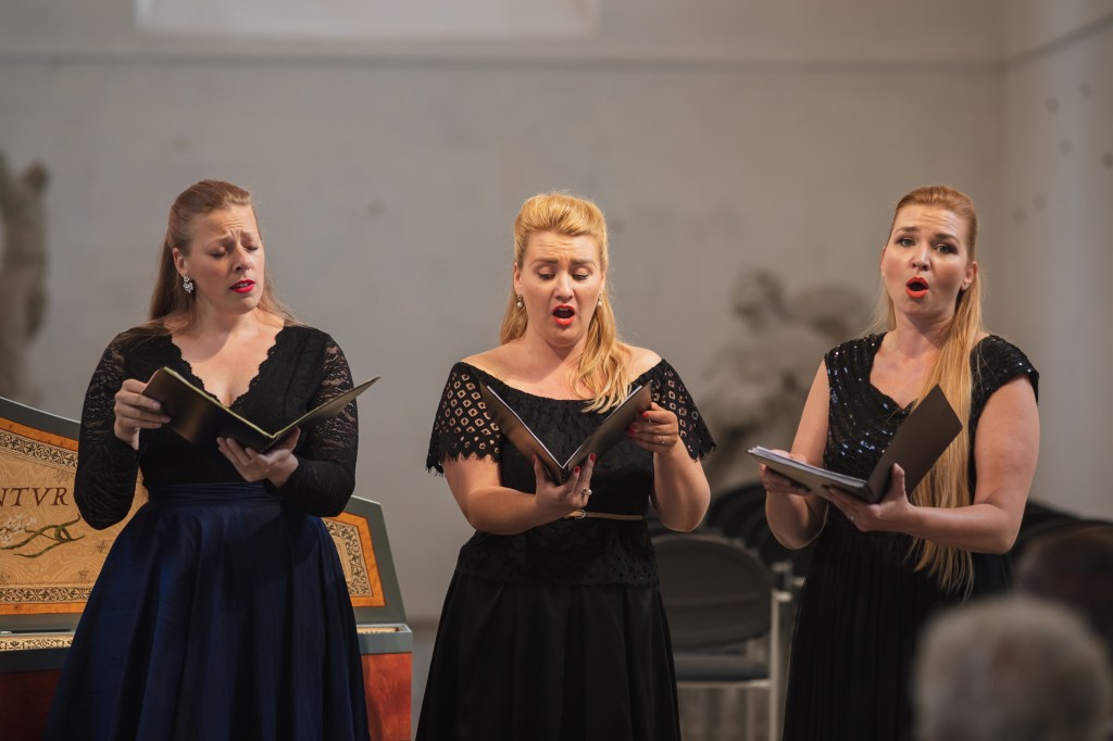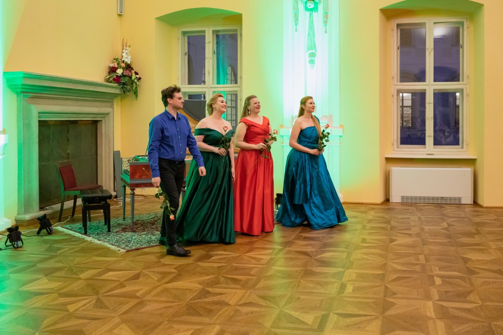 The female vocal trio Drei Engel with a harpsichord virtuoso is literally a combination of four elements in harmonious whole. Their advantage is not only historically informed interpretation of music, but also genuine emotions, enormous energy and pure joy of music, with which they win over listeners. Their performance clearly shows a strong connection, as in addition to professional relationships, they are also bound by a strong bond of friendship. This allows for a certain uninhibited performance and light flirtation with the interpreted repertoire, which makes each concert a unique experience. Individually, as you can read in their CVs, each has slightly different career goals and various successes in their musical careers. However, the joint programmes are for thema matter of heart, which the audience could experience at concerts such as at the Český Krumlov International Festival, the Znojmo Music Festival, in the cycles of chamber concerts of Collegium 1704 in Prague’s Vzlet or Barbara Maria Willi performs, and many others.