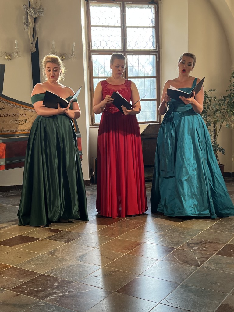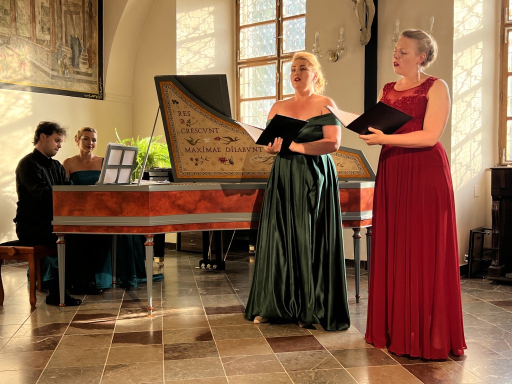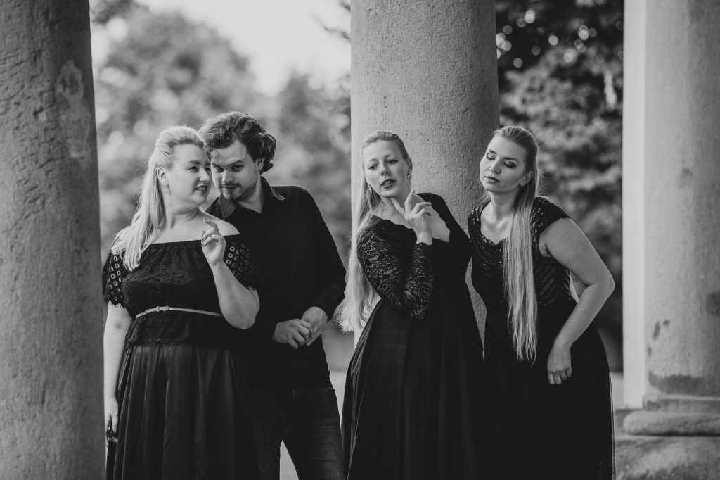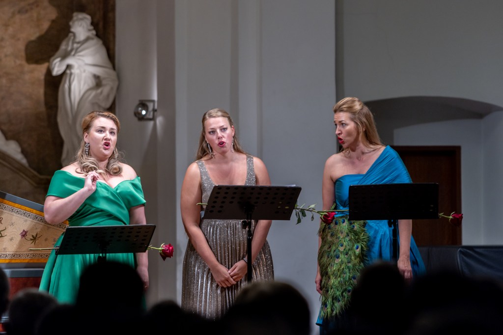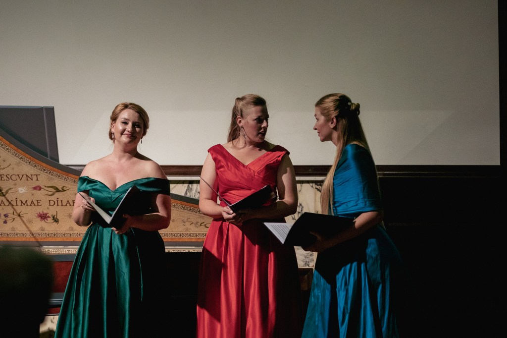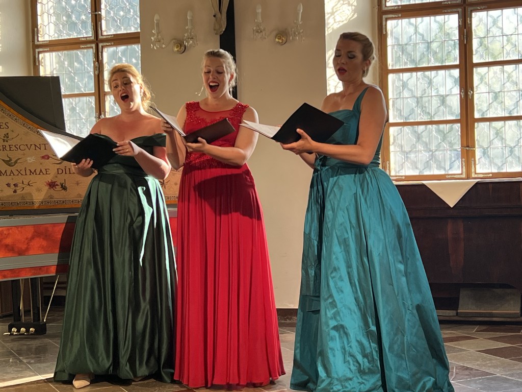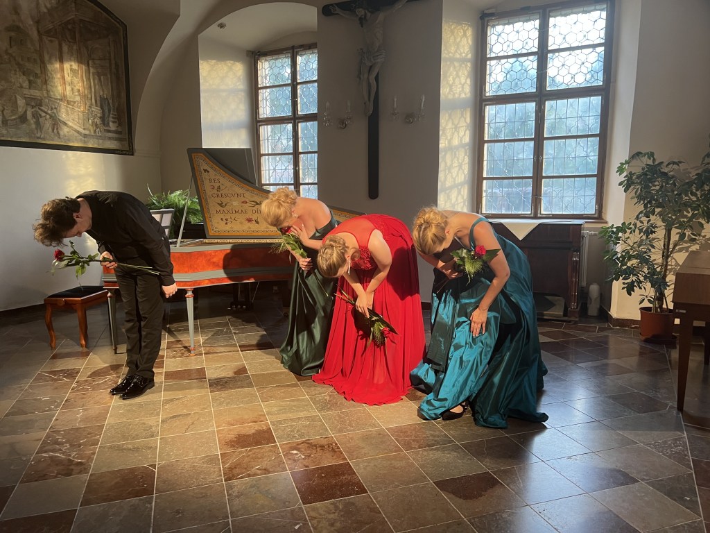 The female vocal trio Drei Engel with a harpsichord virtuoso is literally a combination of four elements in harmonious whole. Their advantage is not only historically informed interpretation of music, but also genuine emotions, enormous energy and pure joy of music, with which they win over listeners. Their performance clearly shows a strong connection, as in addition to professional relationships, they are also bound by a strong bond of friendship. This allows for a certain uninhibited performance and light flirtation with the interpreted repertoire, which makes each concert a unique experience. Individually, as you can read in their CVs, each has slightly different career goals and various successes in their musical careers. However, the joint programmes are for thema matter of heart, which the audience could experience at concerts such as at the Český Krumlov International Festival, the Znojmo Music Festival, in the cycles of chamber concerts of Collegium 1704 in Prague’s Vzlet or Barbara Maria Willi performs, and many others.