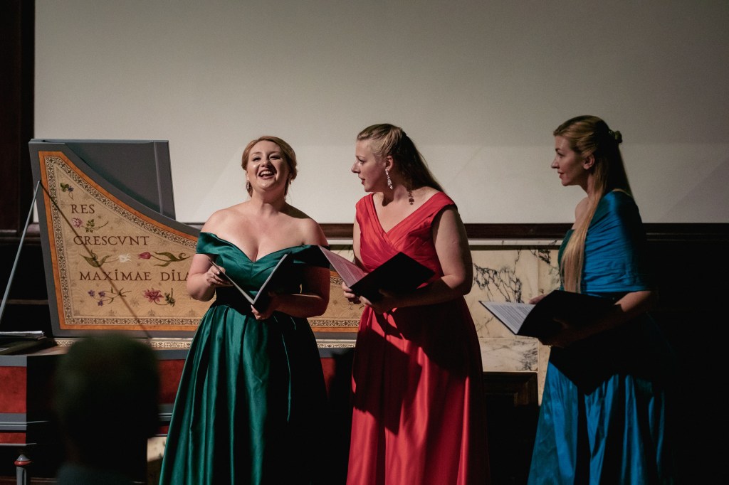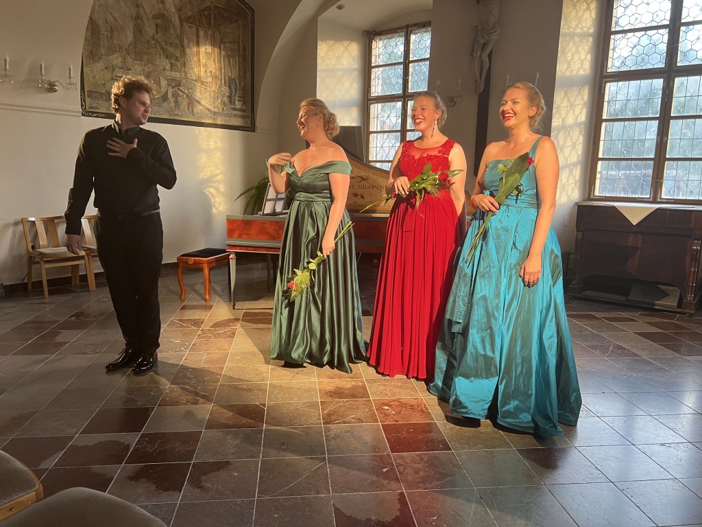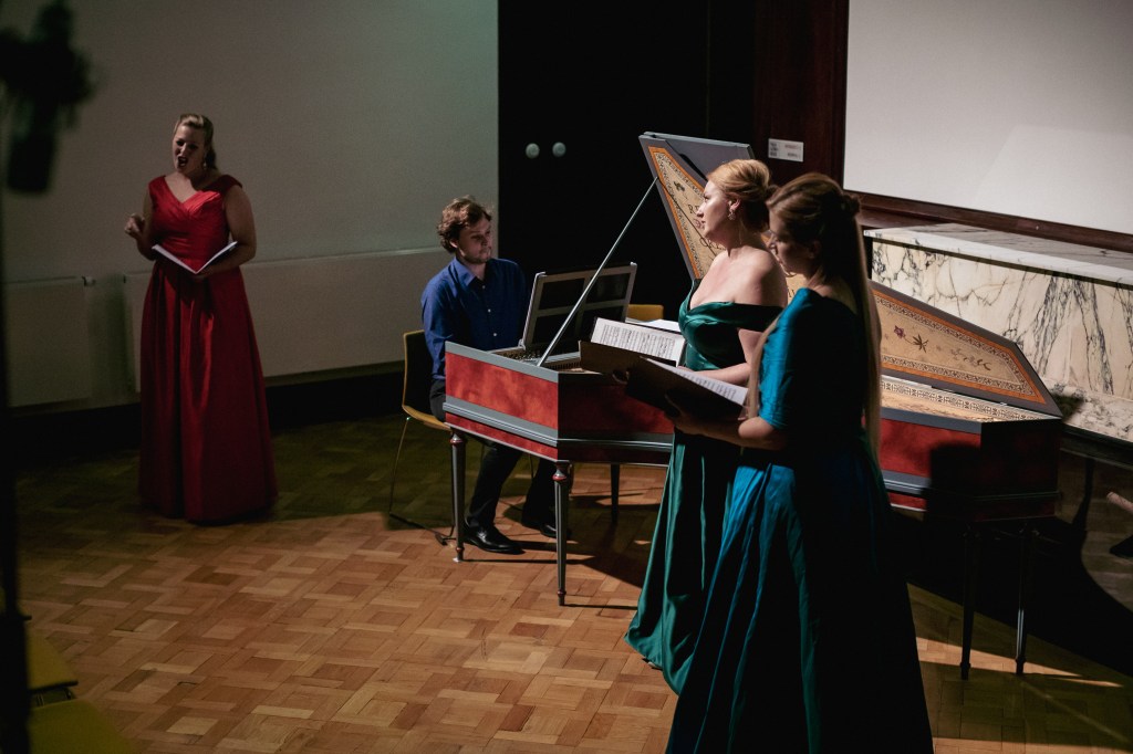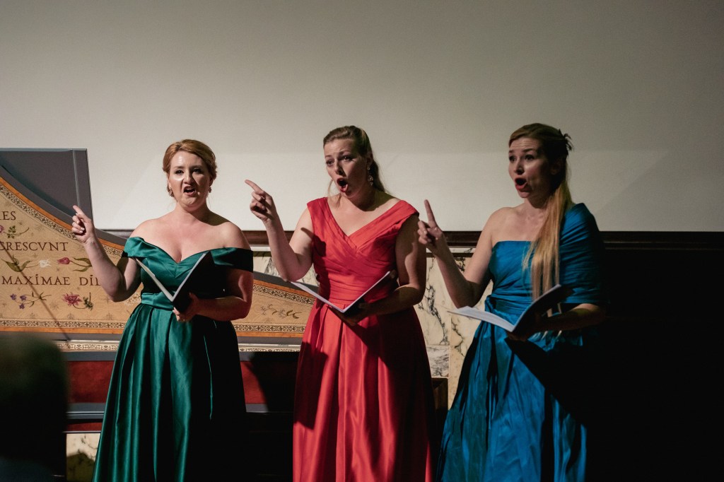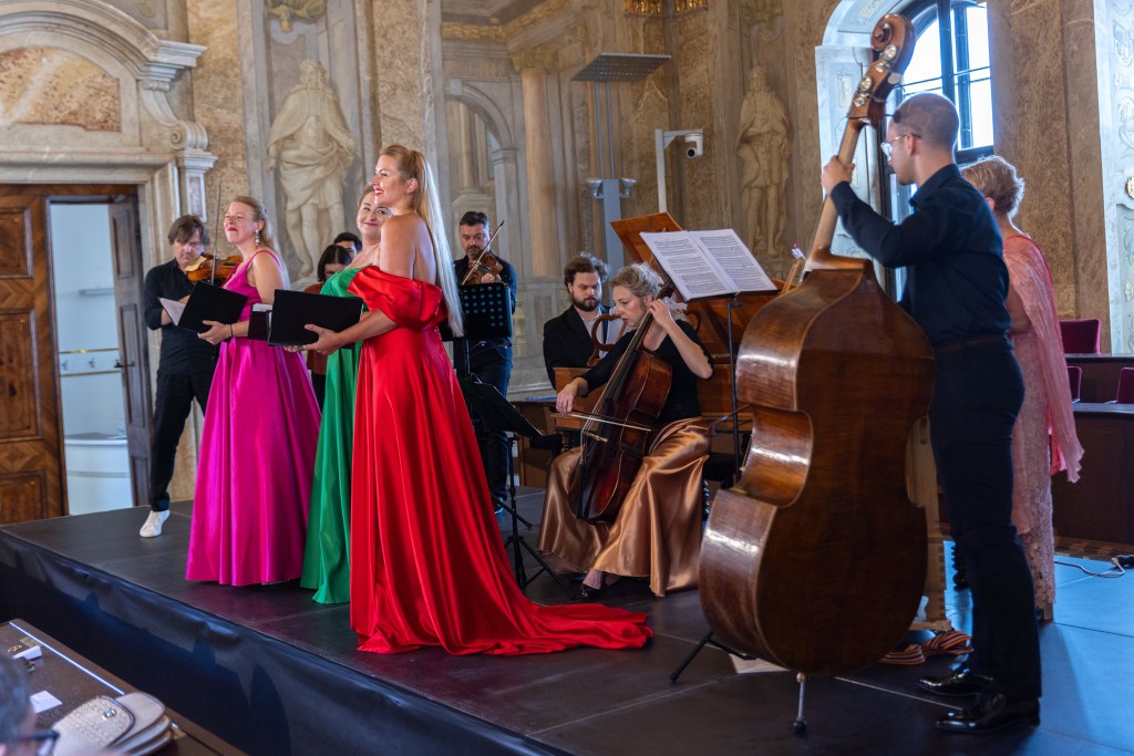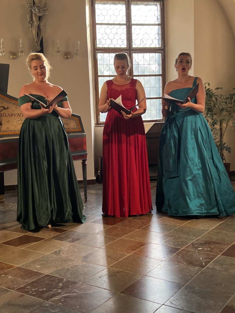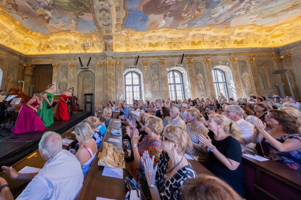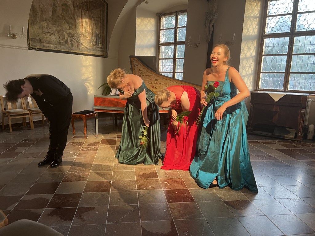 The female vocal trio Drei Engel with a harpsichord virtuoso is literally a combination of four elements in harmonious whole. Their advantage is not only historically informed interpretation of music, but also genuine emotions, enormous energy and pure joy of music, with which they win over listeners. Their performance clearly shows a strong connection, as in addition to professional relationships, they are also bound by a strong bond of friendship. This allows for a certain uninhibited performance and light flirtation with the interpreted repertoire, which makes each concert a unique experience. Individually, as you can read in their CVs, each has slightly different career goals and various successes in their musical careers. However, the joint programmes are for thema matter of heart, which the audience could experience at concerts such as at the Český Krumlov International Festival, the Znojmo Music Festival, in the cycles of chamber concerts of Collegium 1704 in Prague’s Vzlet or Barbara Maria Willi performs, and many others.