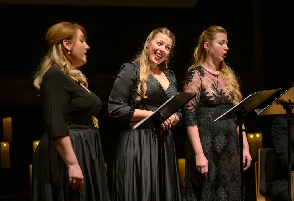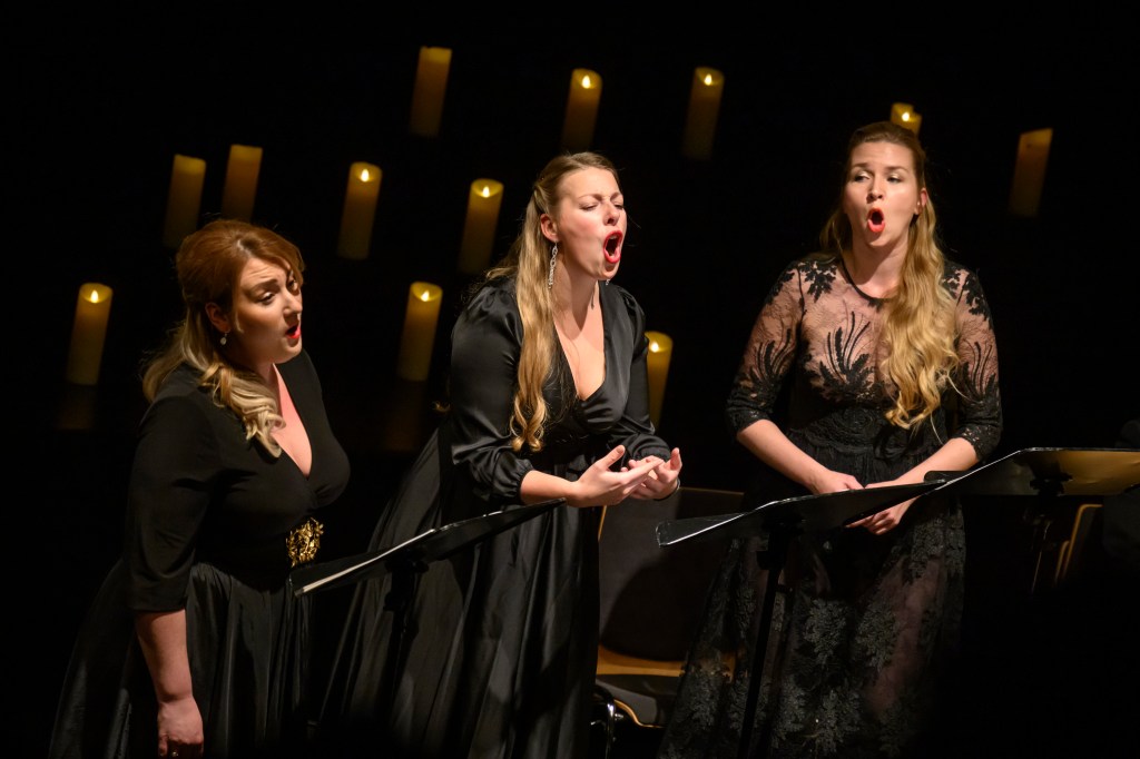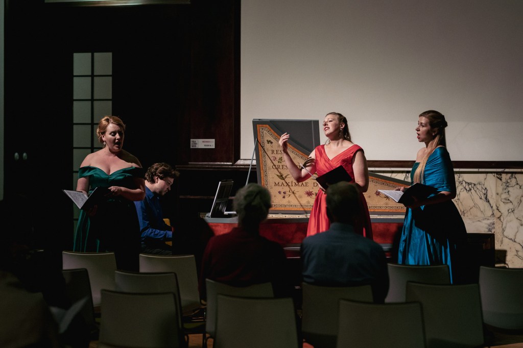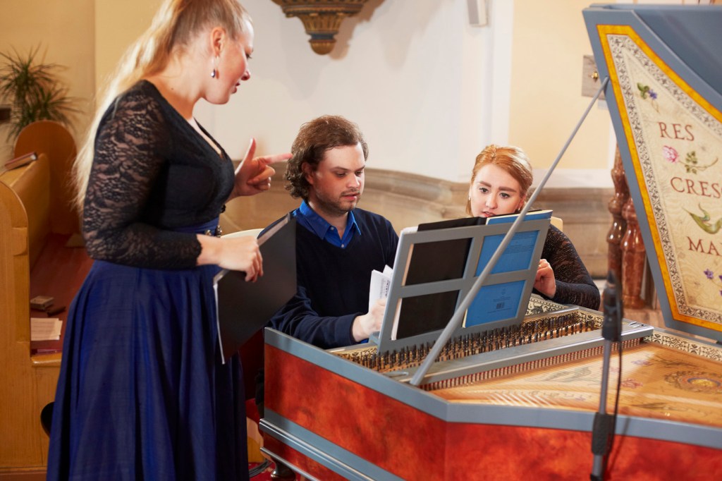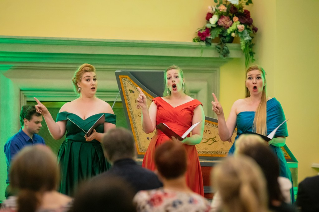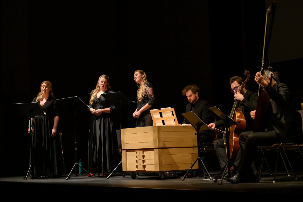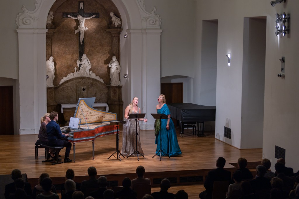 The female vocal trio Drei Engel with a harpsichord virtuoso is literally a combination of four elements in harmonious whole. Their advantage is not only historically informed interpretation of music, but also genuine emotions, enormous energy and pure joy of music, with which they win over listeners. Their performance clearly shows a strong connection, as in addition to professional relationships, they are also bound by a strong bond of friendship. This allows for a certain uninhibited performance and light flirtation with the interpreted repertoire, which makes each concert a unique experience. Individually, as you can read in their CVs, each has slightly different career goals and various successes in their musical careers. However, the joint programmes are for thema matter of heart, which the audience could experience at concerts such as at the Český Krumlov International Festival, the Znojmo Music Festival, in the cycles of chamber concerts of Collegium 1704 in Prague’s Vzlet or Barbara Maria Willi performs, and many others.